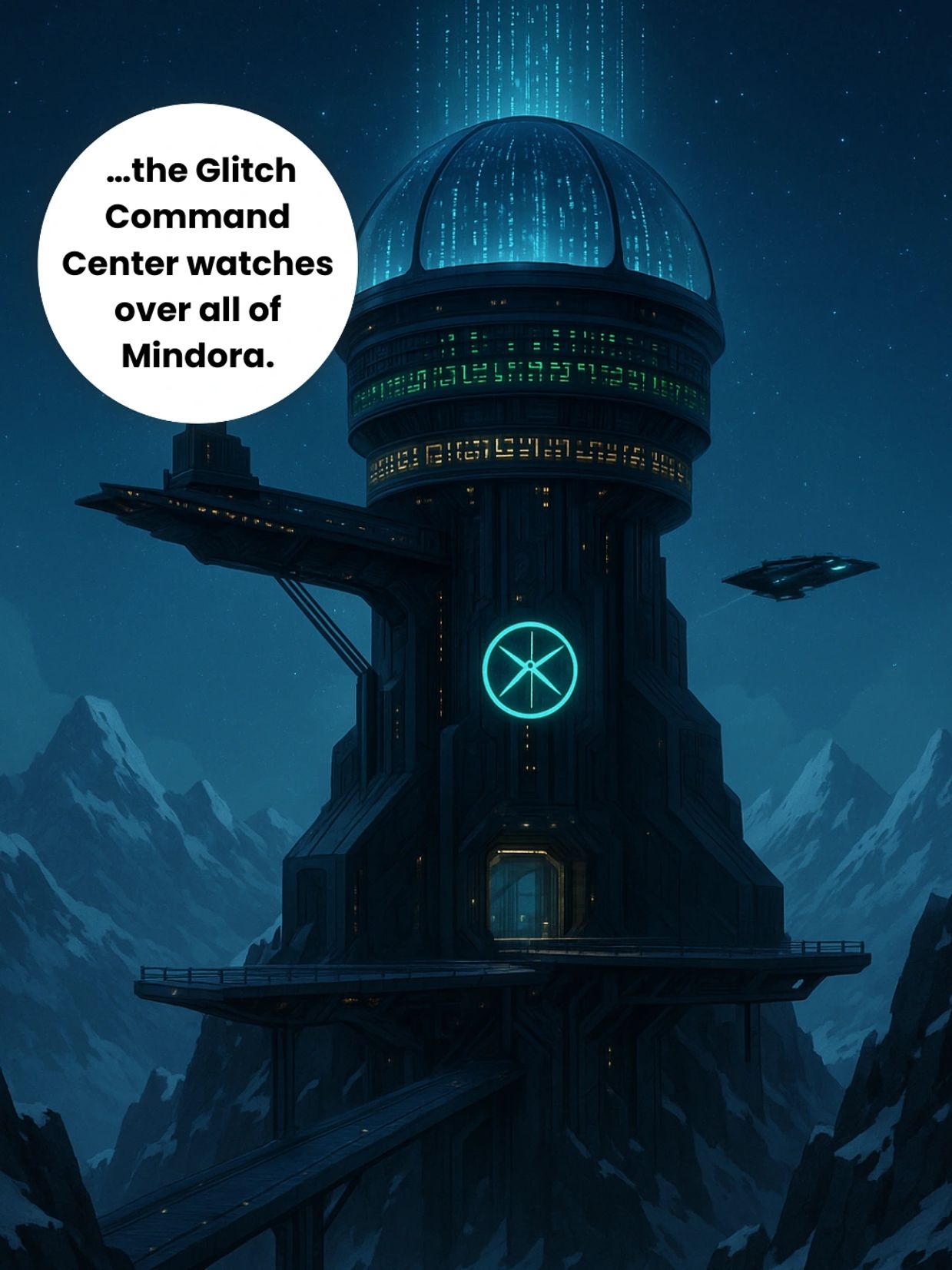 Perched high among the snow-crowned peaks of Mindora, the Glitch Command Center stands as the realm-wide nerve hub for detecting and responding to disruptions in logic and pattern. From its towering spire and panoramic glass dome, shifts in numerical harmony are tracked across every district and border, from Numeria’s counting halls to the farthest reaches of the outer realms.
